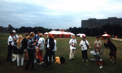Når vi kommer ind i parken, sætter vi vores banner op, hvis vi må...