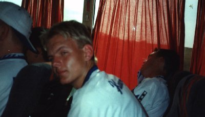Alle i bussen faldt i søvn undtagen mig, som viste mig for min sjove side ved at blive ved med at vække de andre...